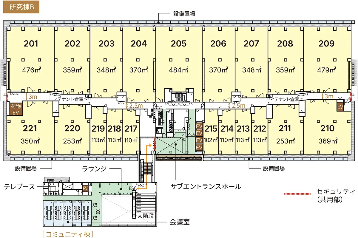 • 最小約100㎡~1フロア(約6,700㎡)まで、多種多様な研究ニーズに対応